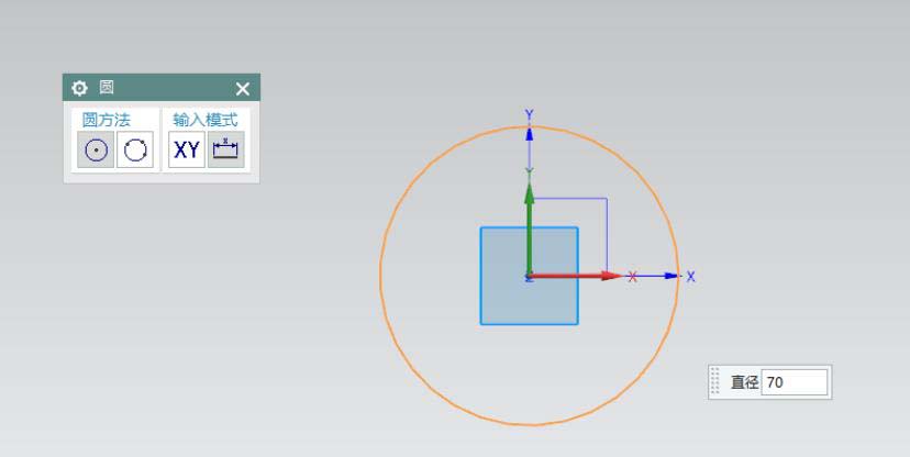 2、點擊“圓”命令工具,以基準(zhǔn)點作為圓心畫圓,直徑給70,點擊確定,如圖所示