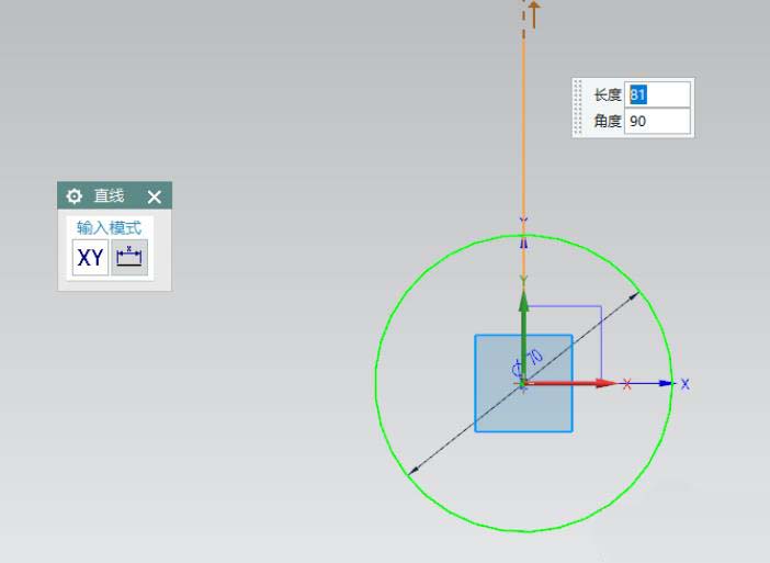 3、選擇“直線”命令工具,以基準(zhǔn)點為起點,向上拉直線,點擊確定,如圖所示
