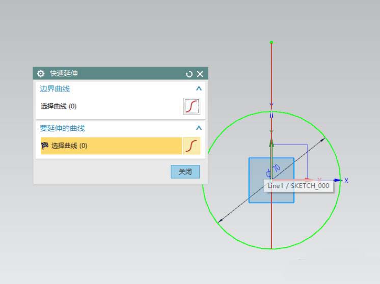 4、選擇“快速延申”命令工具,選擇直線下端進行延申,如圖