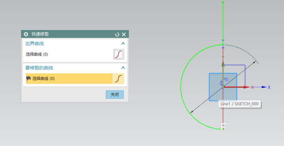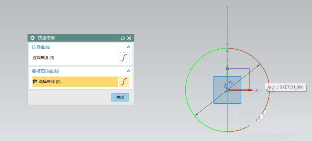 5、選擇“快速修剪”命令工具,修剪右半邊圓和園內(nèi)直線,如圖