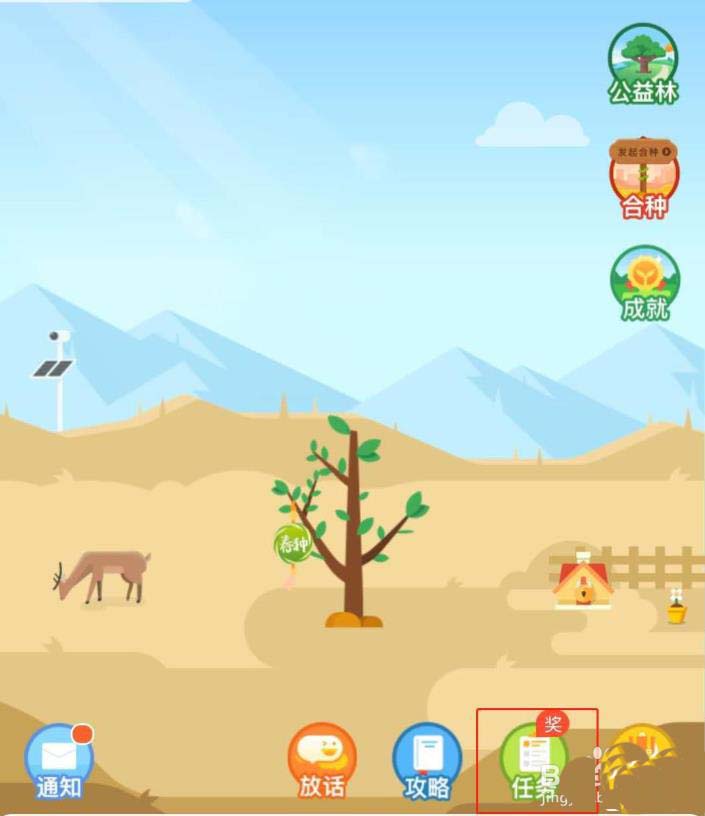 3、進入“螞蟻森林”主頁,選擇界面中的“任務(wù)”選項;