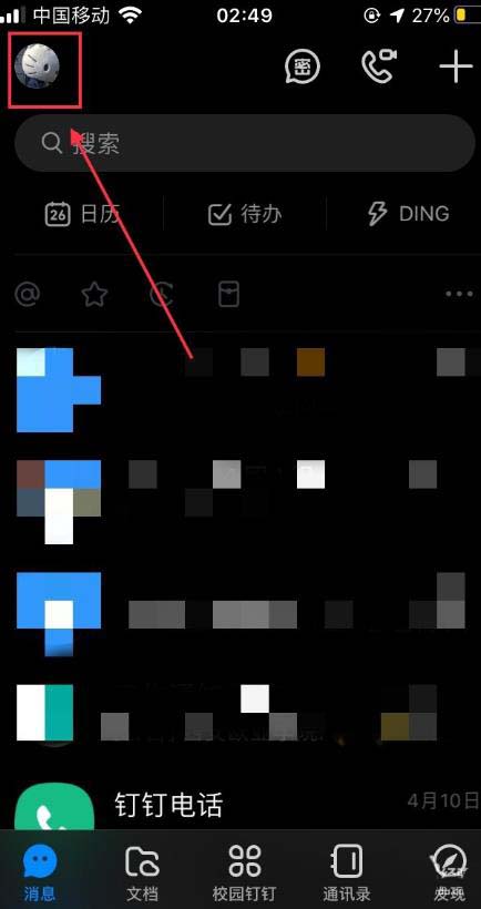 2、進(jìn)入釘釘?shù)慕缑?,點(diǎn)擊左上角我們登陸賬號(hào)的頭像。