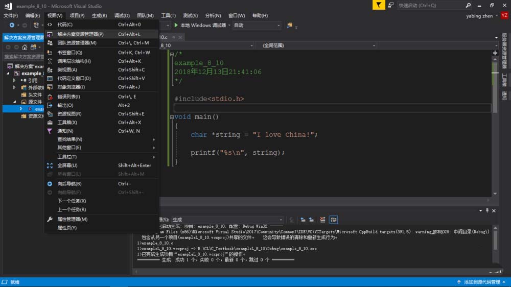 2、在菜單欄中點(diǎn)擊"視圖",選擇"解決方案資源管理器"選項(xiàng)。