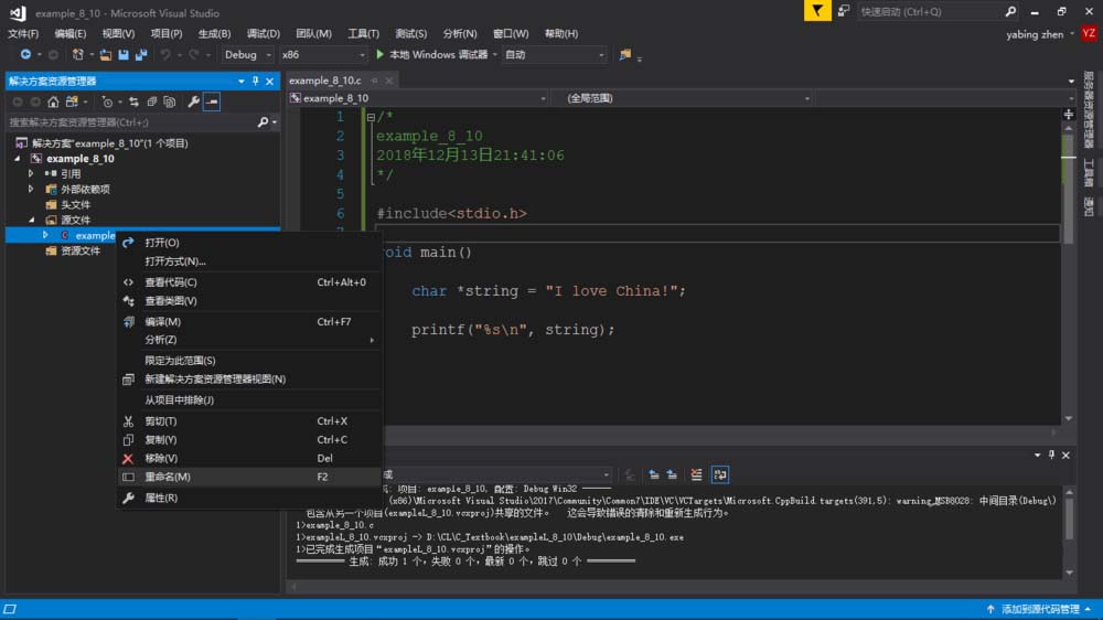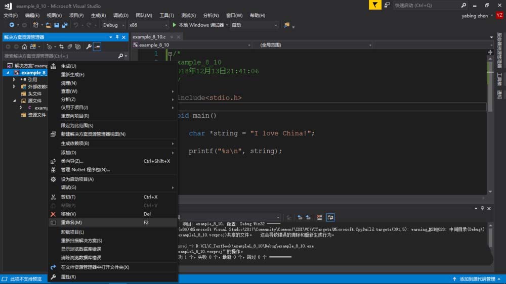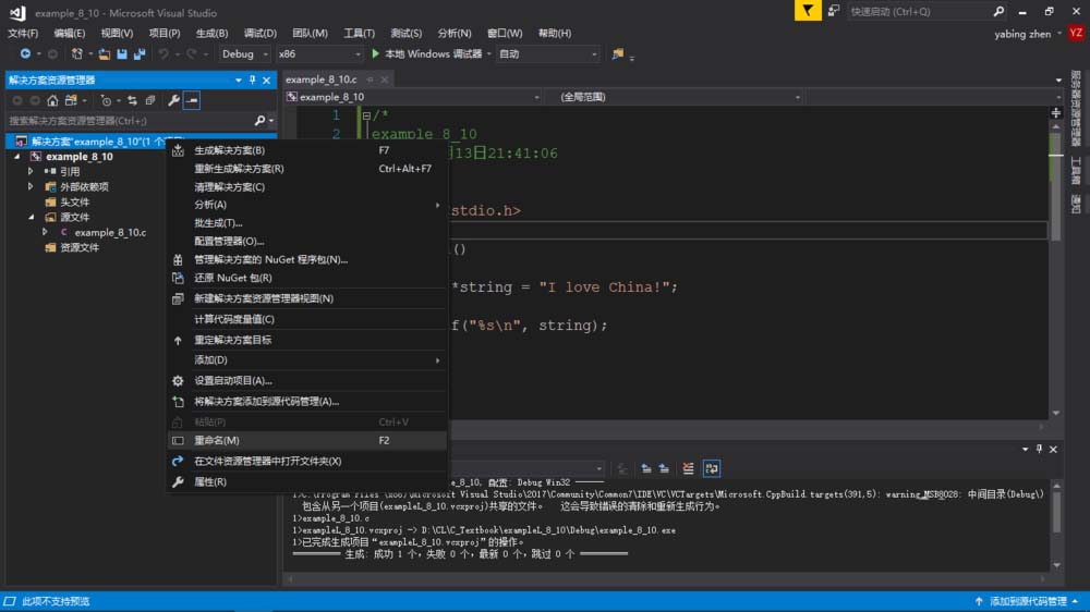 解決方案重命名:鼠標(biāo)右擊解決方案,選擇"重命名"。
