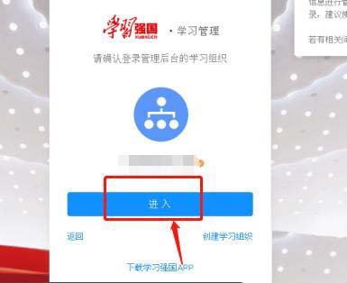 2、驗證成功后,出現(xiàn)本組織名稱,點擊【進(jìn)入】。