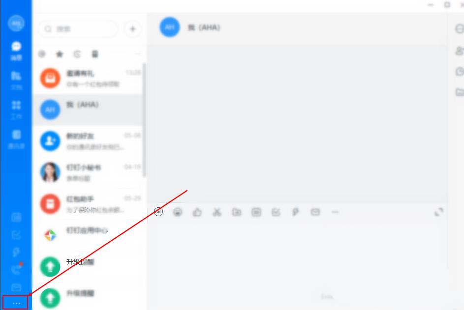 2、打開登錄后,在窗口界面的左下角,點擊圖示箭頭所指的“更多”圖標;
