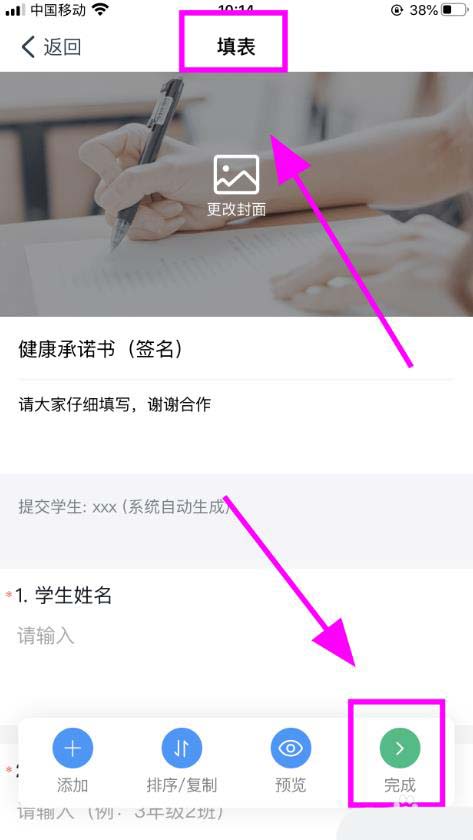 4、進(jìn)入承諾書編輯頁面。內(nèi)容編輯完畢后點(diǎn)擊右下角的【完成】;