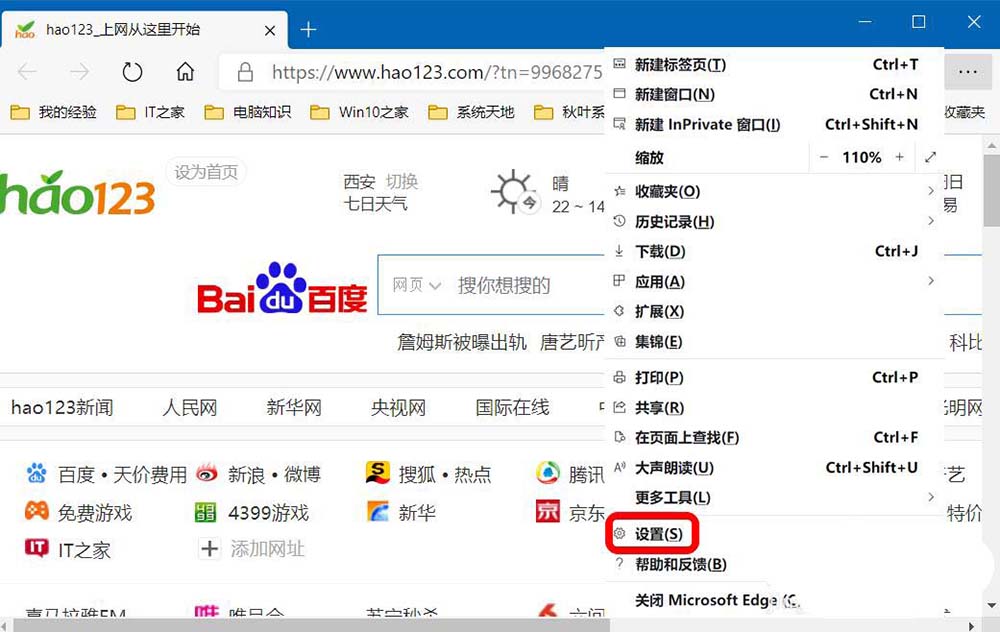 3、在展開的菜單中,我們點(diǎn)擊:設(shè)置;
