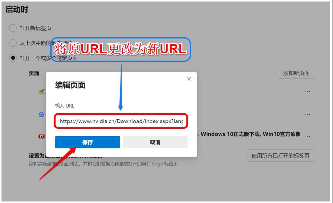 13、在編輯頁面對話框中將原 URL 更改為新的 URL,再點擊:保存;