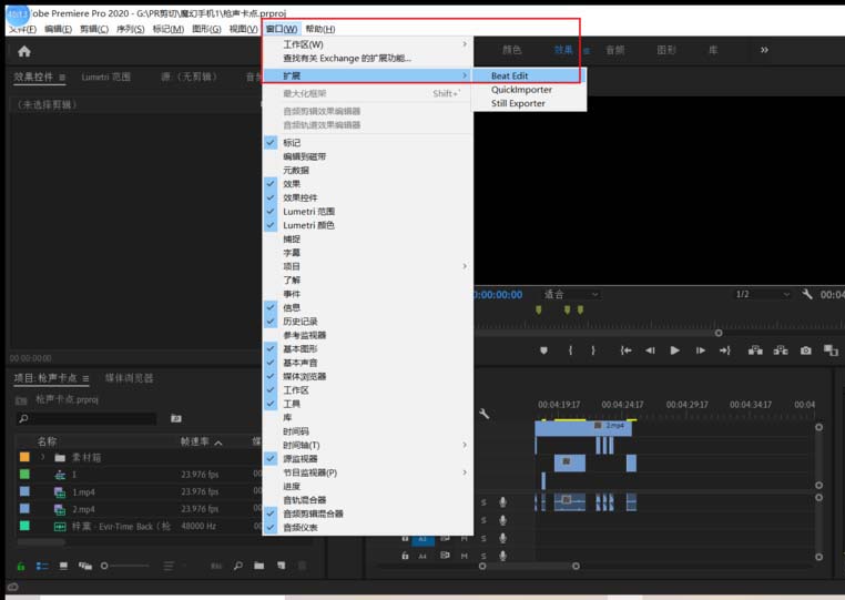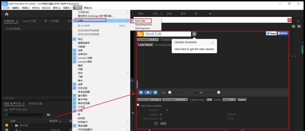 8、再次打開PR,這時(shí)候Beat Edit插件就可以打開了。