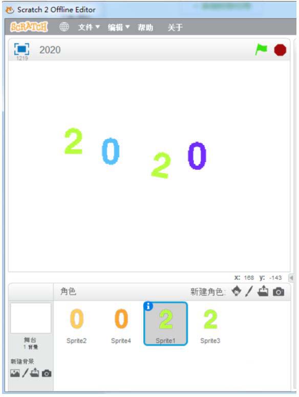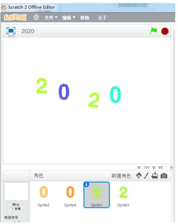 scratch怎么制作變色閃爍的2020文字動畫效果?