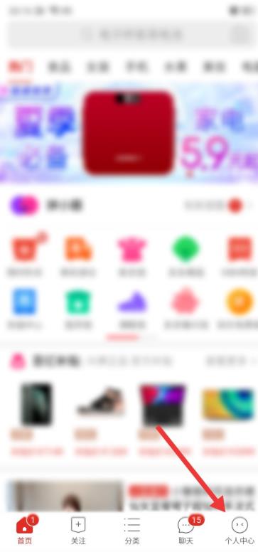 2、打開后,點擊右下角的【個人中心】。