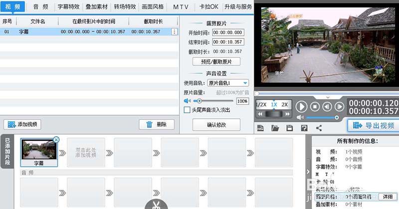 2、點(diǎn)擊添加視頻,選擇要添加的視頻,點(diǎn)擊打開,會(huì)彈出“預(yù)覽/截取”的提示框,點(diǎn)擊確定,會(huì)看到視頻被成功添加到了列表中。