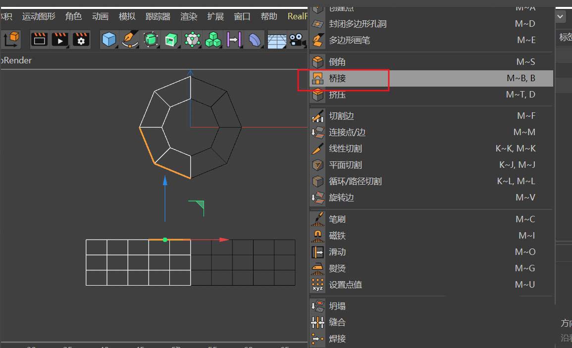 用橋接命令將兩個多邊形相應的線連接起來,如圖所示。