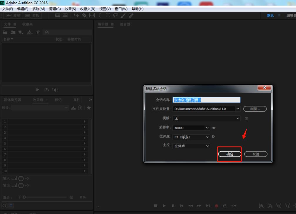 在彈出的新建多軌會話窗口中,給項目進(jìn)行命名,然后點擊確定。