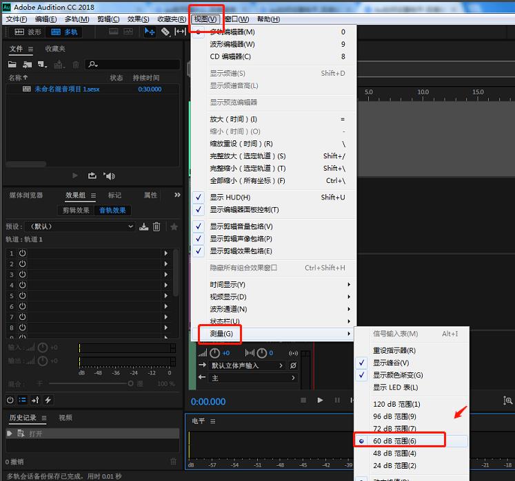 5.再次點擊頂部工具欄中的“視圖”——“測量”——“60dB范圍”。