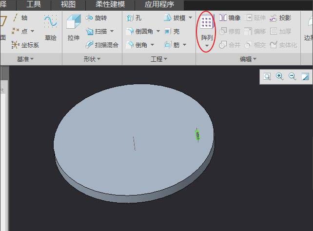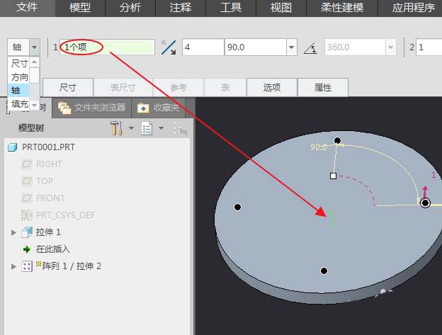 在模型樹中選中要陣列的特征,然后點(diǎn)擊工具欄中“陣列”命令。
