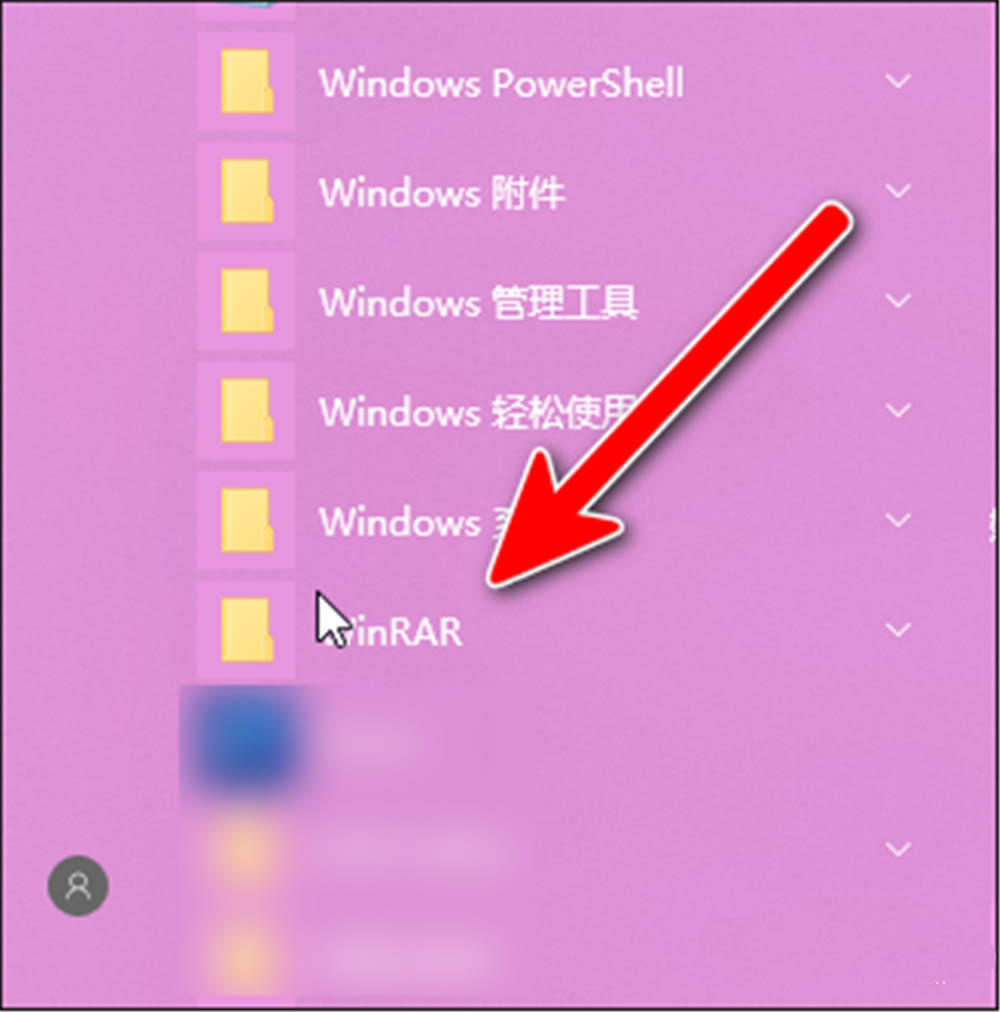 2、找到“WinRAR”點(diǎn)開,如下圖。