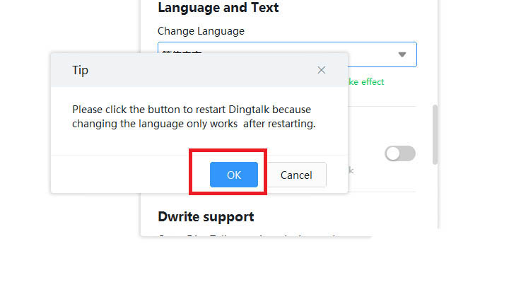 6、最后點(diǎn)擊OK重啟釘釘軟件即可
