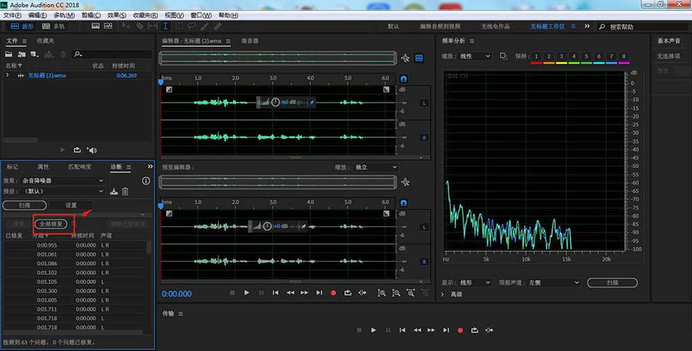 6、掃描完成后,點擊“全部修復”按鈕,即可修復出現問題的音頻文件。