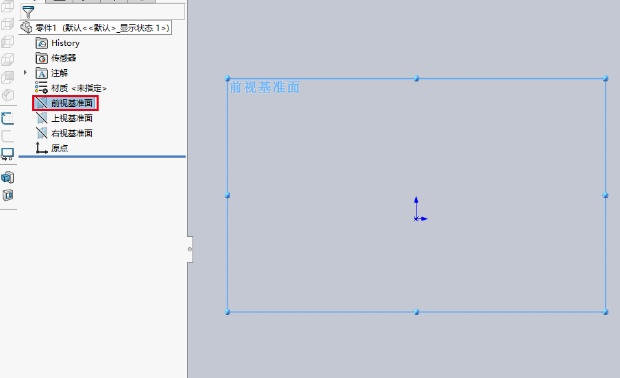 3、進(jìn)入到一個(gè)新的零件界面,這時(shí)候選擇前視基準(zhǔn)面為繪圖平面。