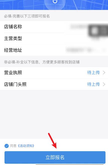 5、點(diǎn)擊后,完善店鋪信息后,再次點(diǎn)擊立即報(bào)名的選項(xiàng)即可。