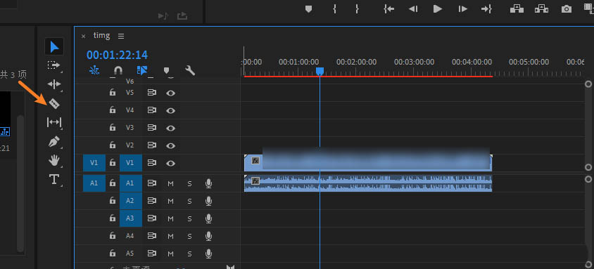 2、點(diǎn)擊美工刀,在需要遮罩的片段分段。