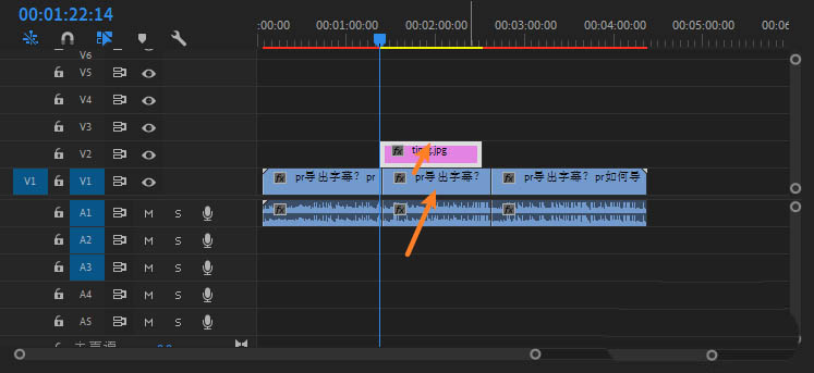 3、把要作為遮罩的小圖片從素材庫拖入這個(gè)分割后的片段上層,把圖片后拉,讓圖片與片段視頻一樣長。