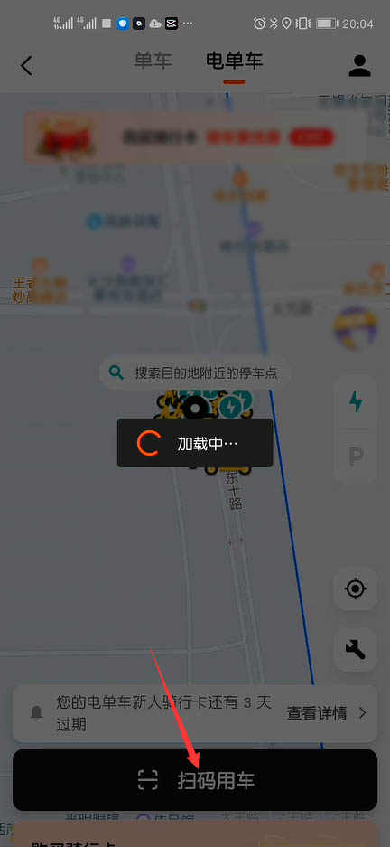 2、默認(rèn)打開的是電單車的地圖頁面,在當(dāng)前地圖上黃色的車標(biāo)都是附近美團(tuán)電動車所在位置,我們可以根據(jù)地圖上電車的位置找到它騎行。
