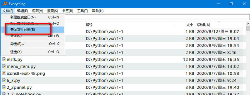 8、使用完成后,記得點擊文件→關(guān)閉文件列表命令,不然不會搜索所有文件。