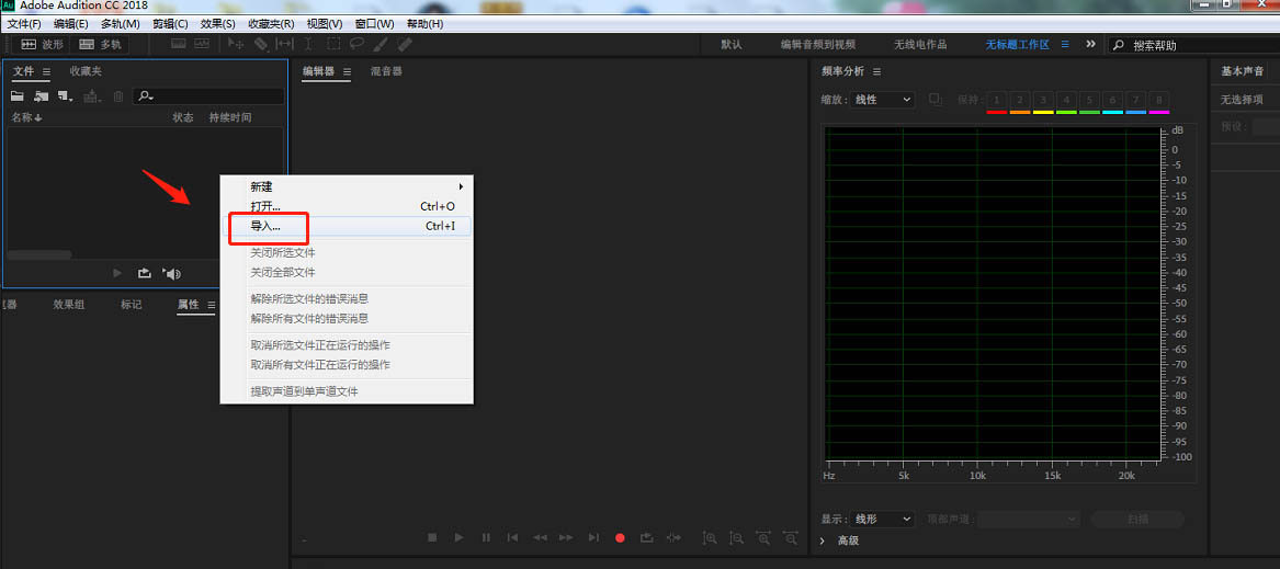 1、首先在電腦中打開AU軟件,點(diǎn)擊左上角,在彈出的窗口中點(diǎn)擊導(dǎo)入。