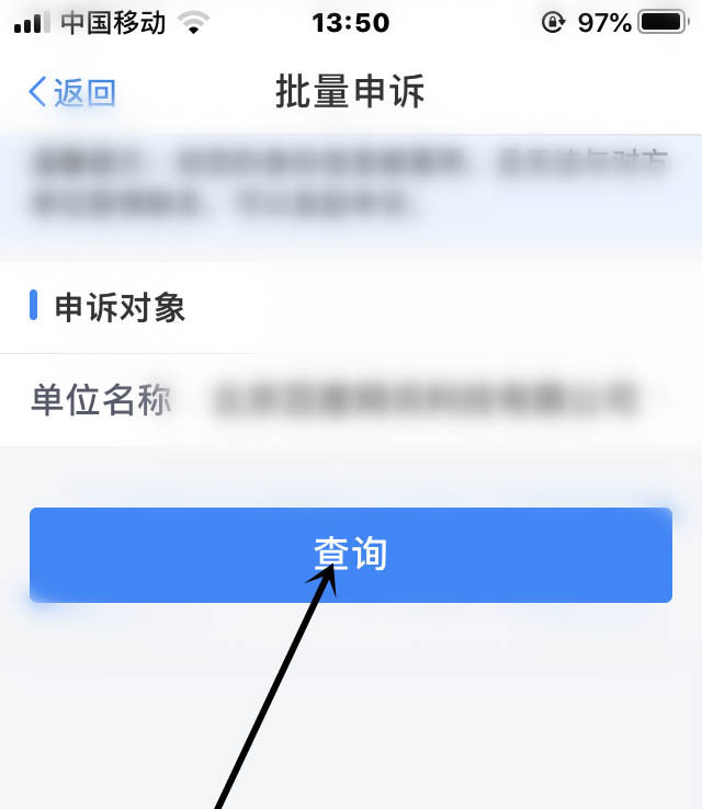 5、打開(kāi)批量申訴的頁(yè)面選擇申訴對(duì)象后點(diǎn)擊“查詢”按鈕