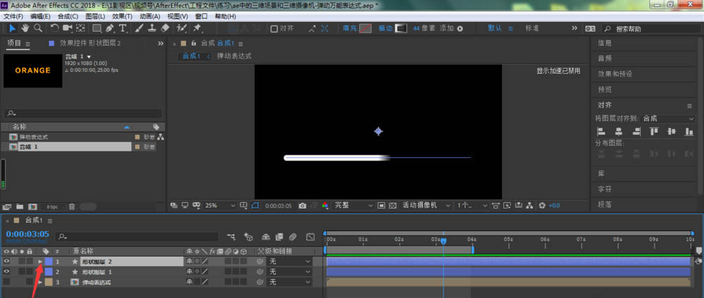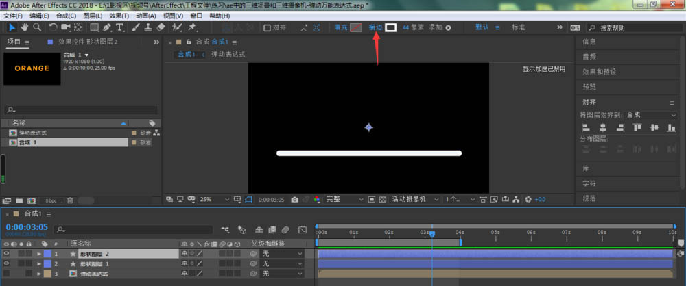 1、我們在ae中已經(jīng)創(chuàng)建了一個形狀圖層,點擊箭頭所指的描邊