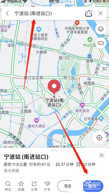 2、選擇好到達(dá)的目的地,點(diǎn)擊【路線】