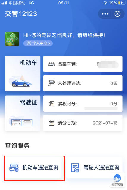 4、然后點(diǎn)擊【機(jī)動(dòng)車違法查詢】