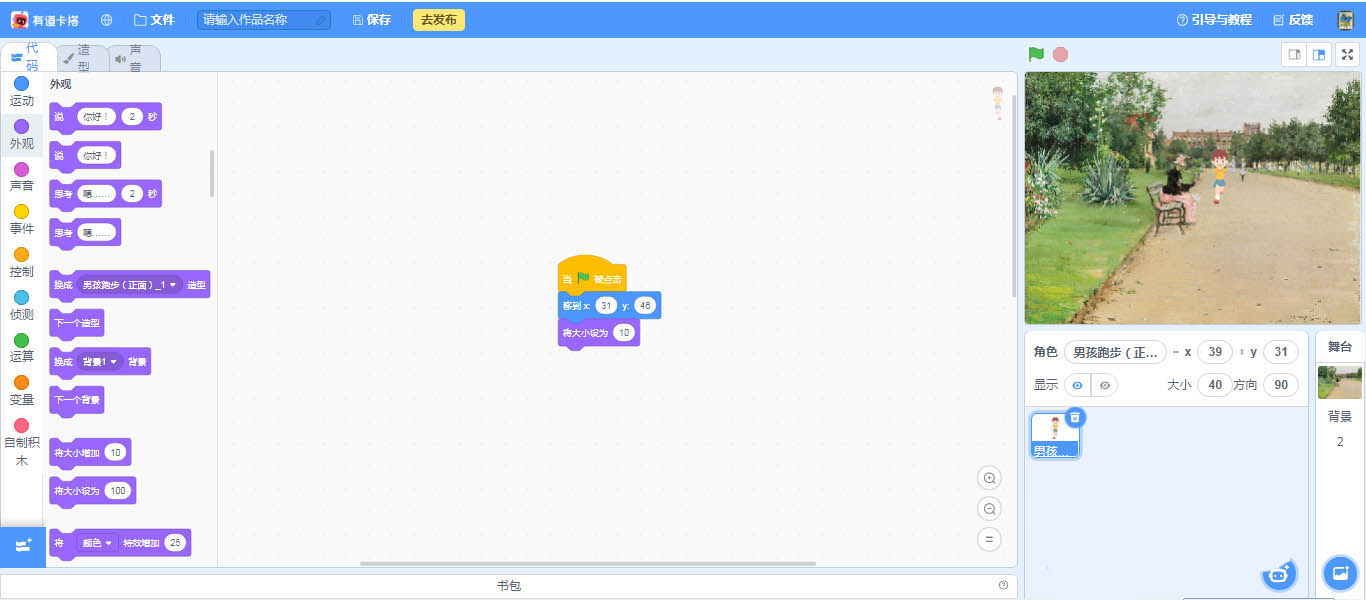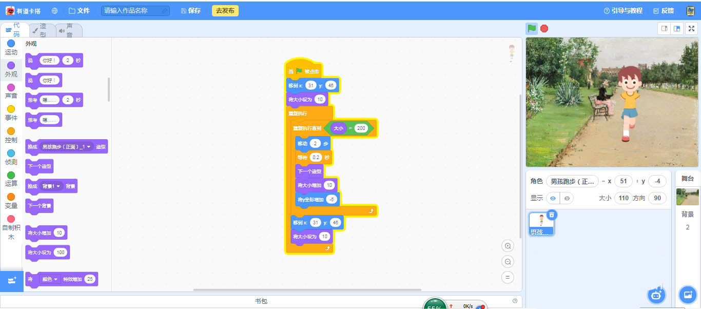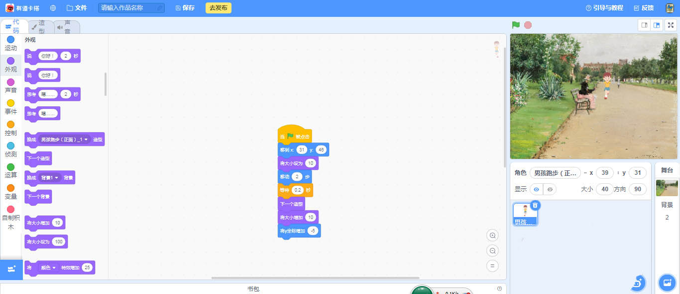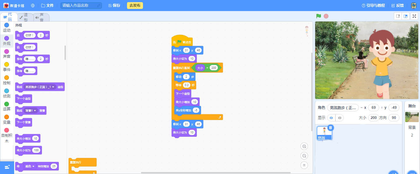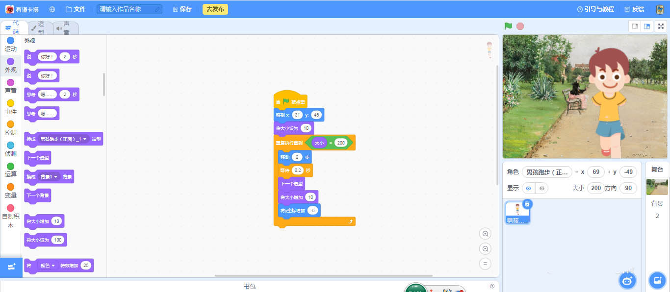 scratch3.0怎么實現(xiàn)小男孩由遠處跑來的動畫效果?