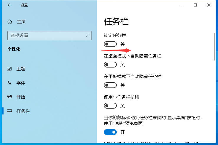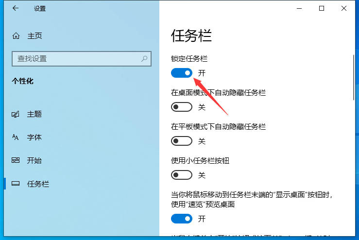 4、然后將鎖定任務欄的滑動按鈕向右滑動。