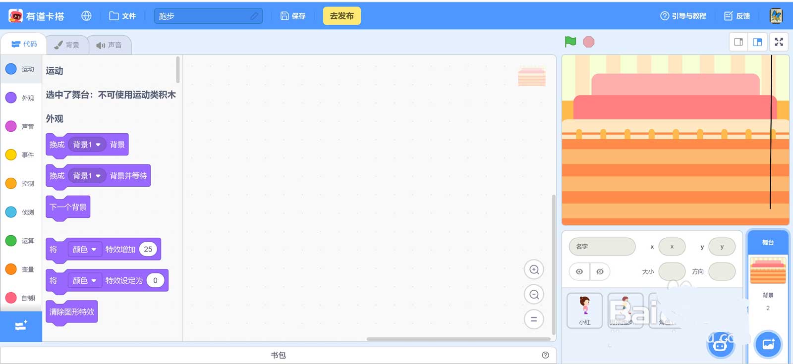 1、首先打開圖形化編程軟件,然后選擇一個(gè)和跑步相關(guān)的背景圖片。