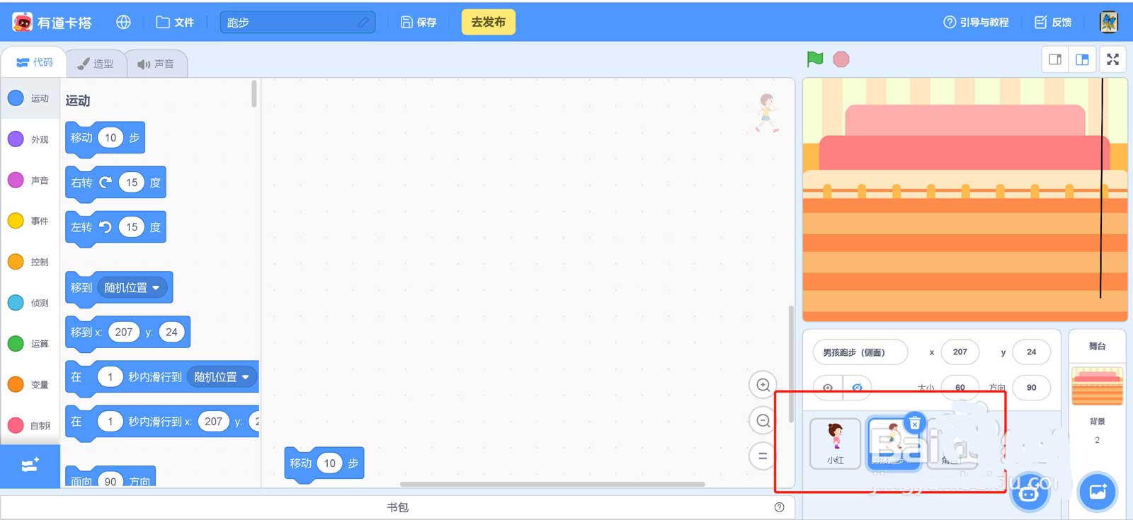 scratch3.0怎么實(shí)現(xiàn)小男孩由遠(yuǎn)處跑來的動(dòng)畫效果?