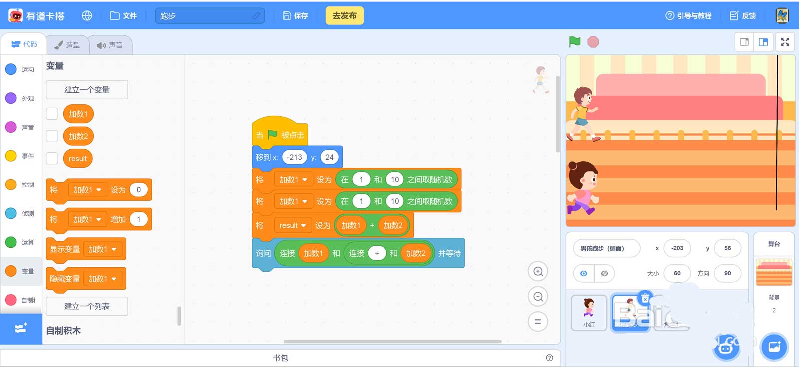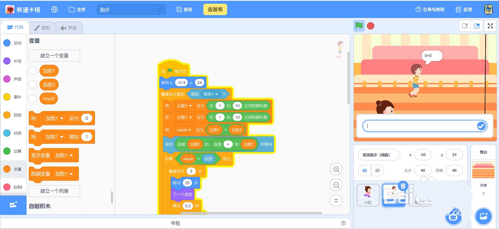 scratch怎么制作通過口算來贏取跑步比賽的小游戲?