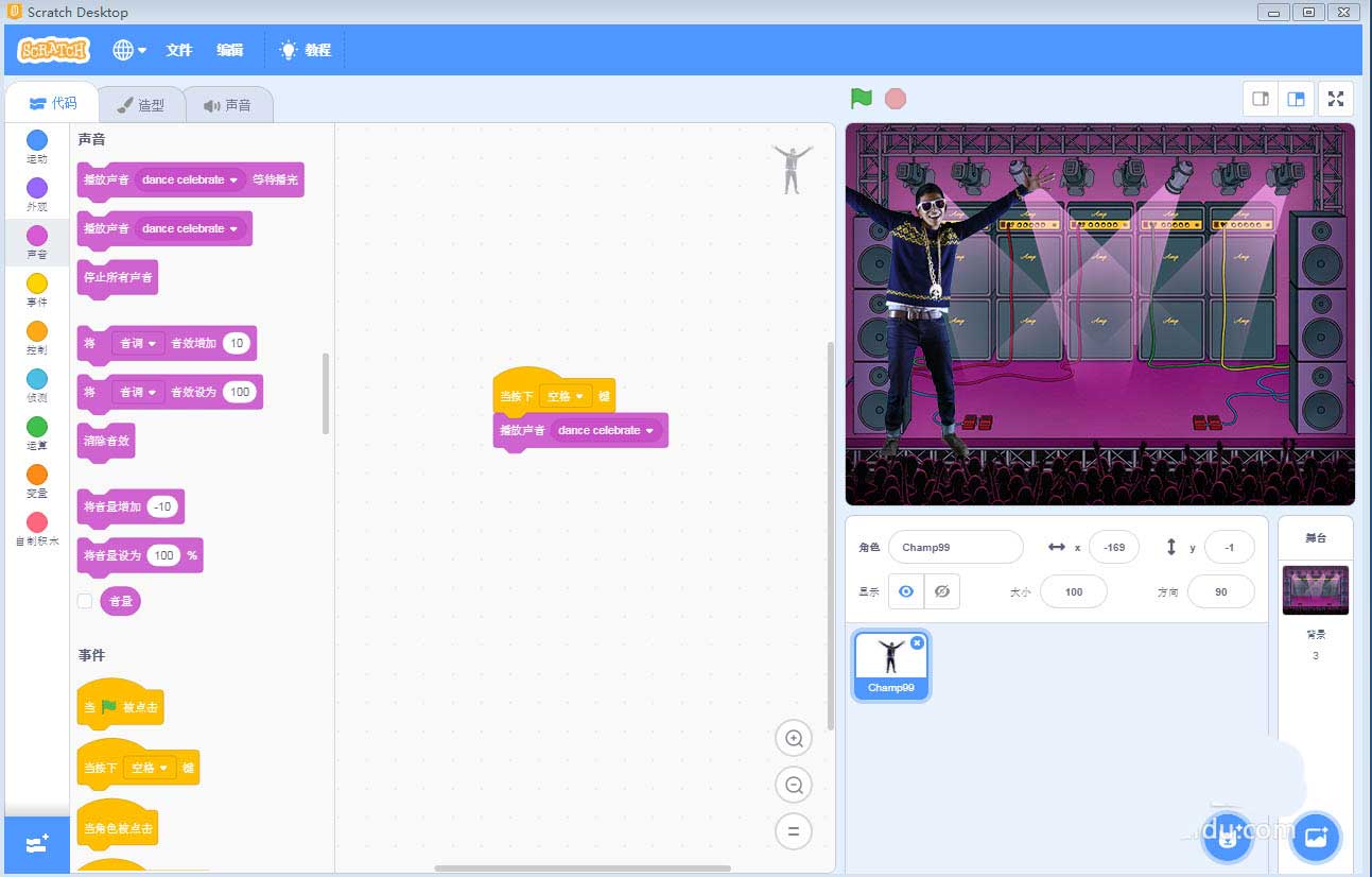 Scratch讓中想要制作一段讓人物伴隨音樂(lè)跳舞的效果,該怎么制作這個(gè)動(dòng)畫效果呢?下面我們就來(lái)看看詳細(xì)的教程。