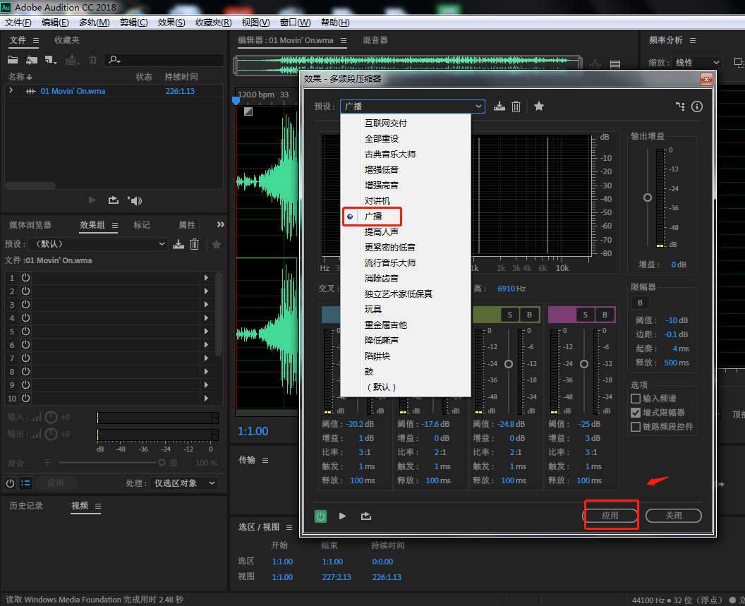 AU音頻剪輯怎么設(shè)置廣播多頻段壓縮效果?