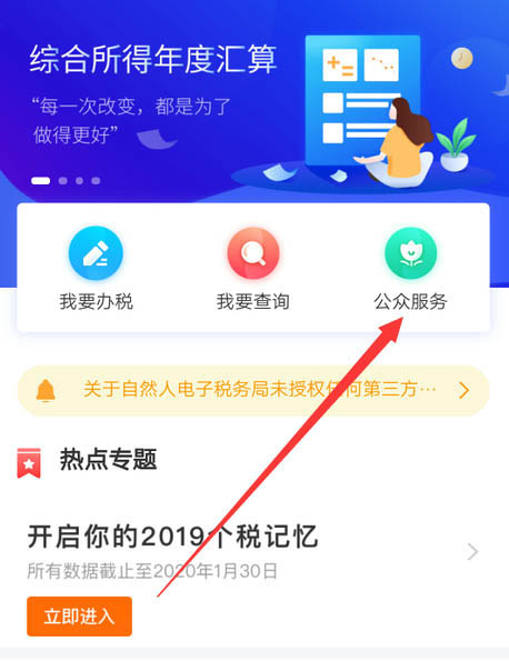 2、進入首頁后,點擊上方的公眾服務(wù)。