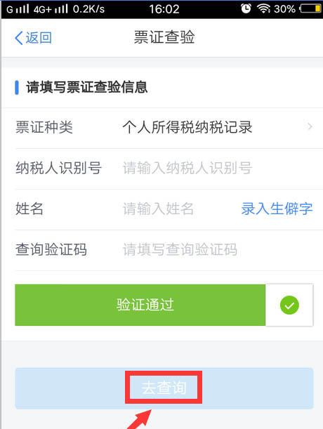 5、最后輸入票證查驗信息,點擊去查詢即可。