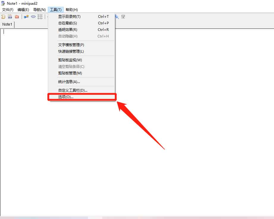 1、在“minipad2”主界面中,點(diǎn)擊上方的“工具(T)”菜單項(xiàng)。