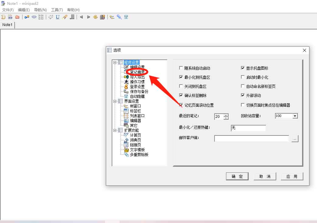 minipad2 是一款小巧的便箋程序,多標(biāo)簽頁風(fēng)格,系統(tǒng)資源占用少,集純文本編輯、計(jì)算器、備忘錄、電子詞典、桌面貼等多種功能于一體,所有便箋內(nèi)容自動(dòng)保存在單一的文本文件中,關(guān)閉時(shí)自動(dòng)記憶最后的狀態(tài).可設(shè)為隨系統(tǒng)自動(dòng)啟動(dòng)并最小化到系統(tǒng)托盤。今天我們就來看看minipad2怎么關(guān)閉自動(dòng)記錄開關(guān)熱鍵功能的教程,詳細(xì)請看下文介紹。
