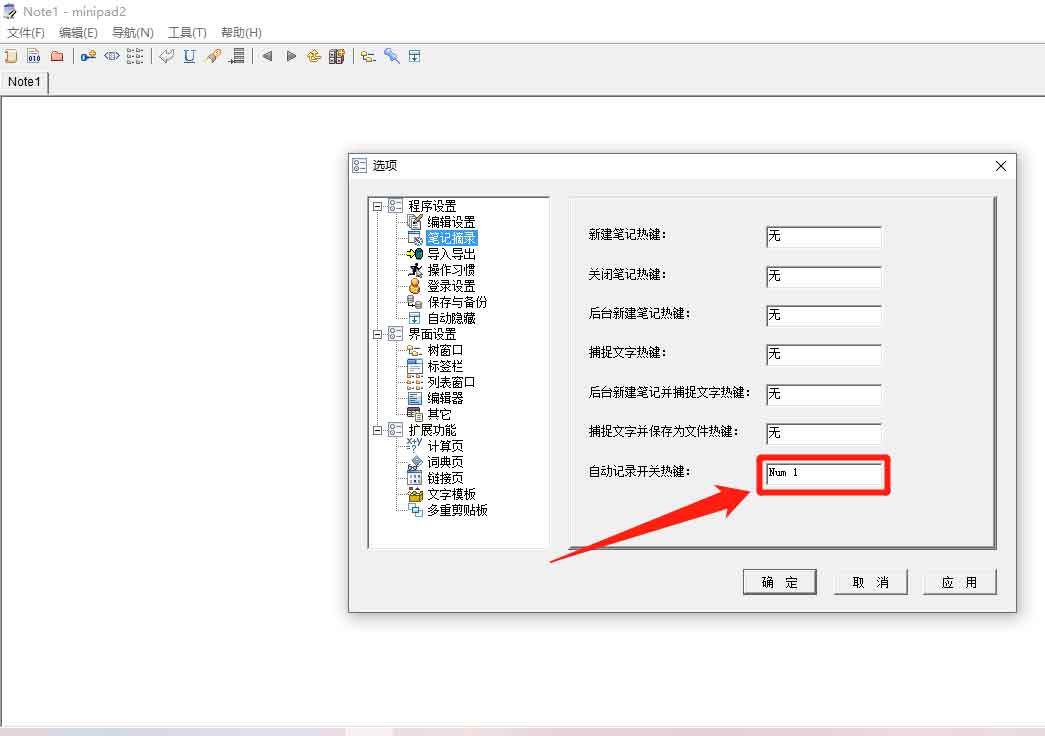 minipad2便簽軟件自動(dòng)記錄開關(guān)熱鍵怎么關(guān)閉?