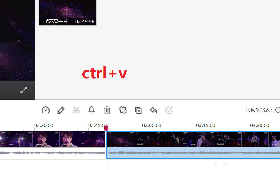 5、除此之外,我們使用快捷鍵ctrl+v也可以重復(fù)添加相同的視頻,這種操作更加簡單。