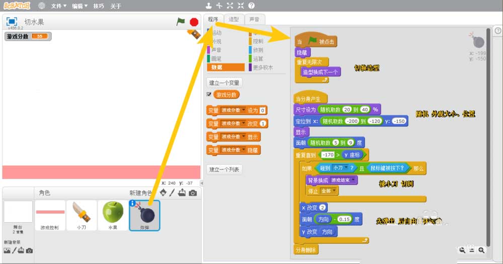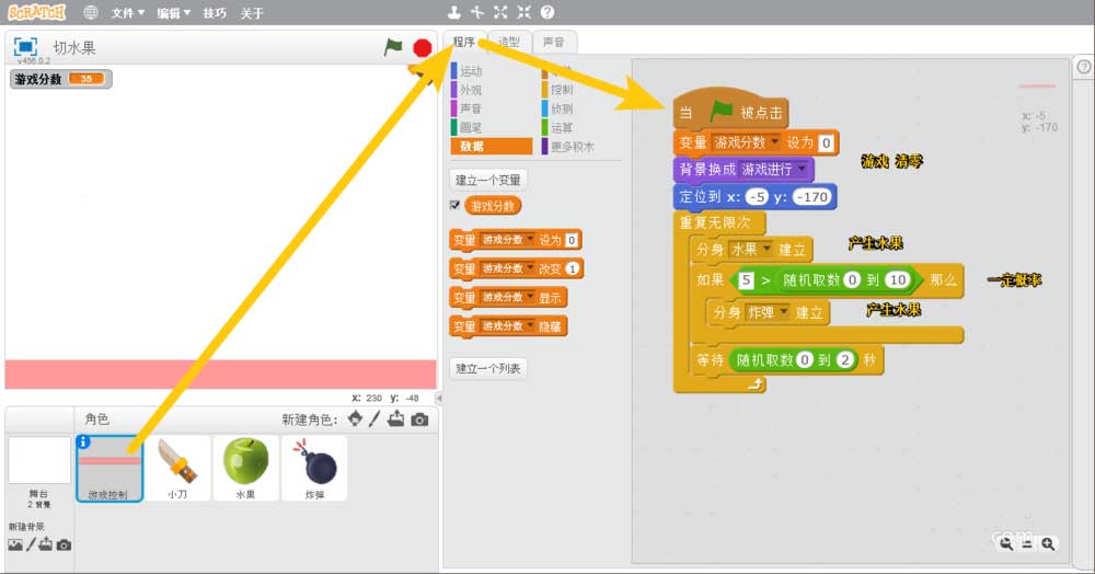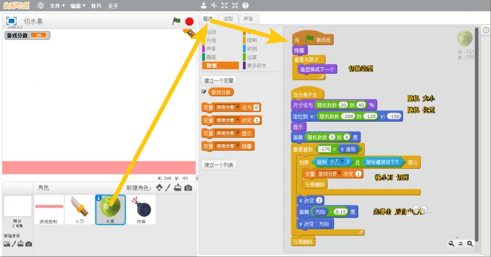 Scratch怎么制作切水果的動畫程序? Scratch切水果小游戲的玩法