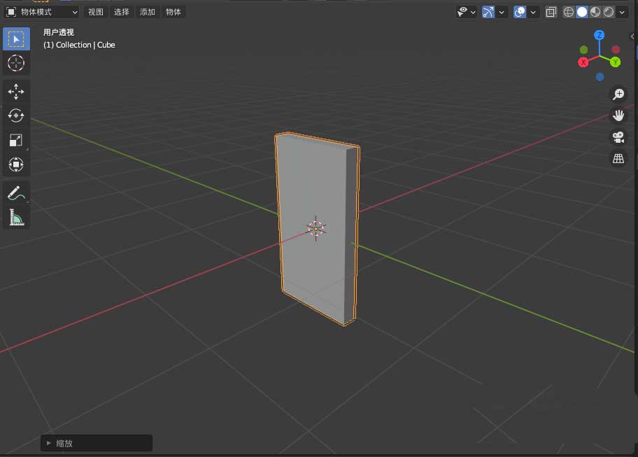 2、選中立方體,按快捷鍵S將立方體縮小到長(zhǎng)方體形狀,如下圖